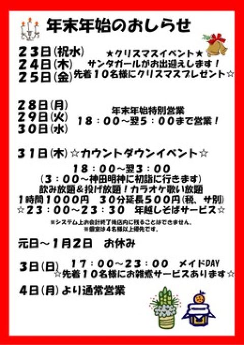 年末年始のおしらせ
