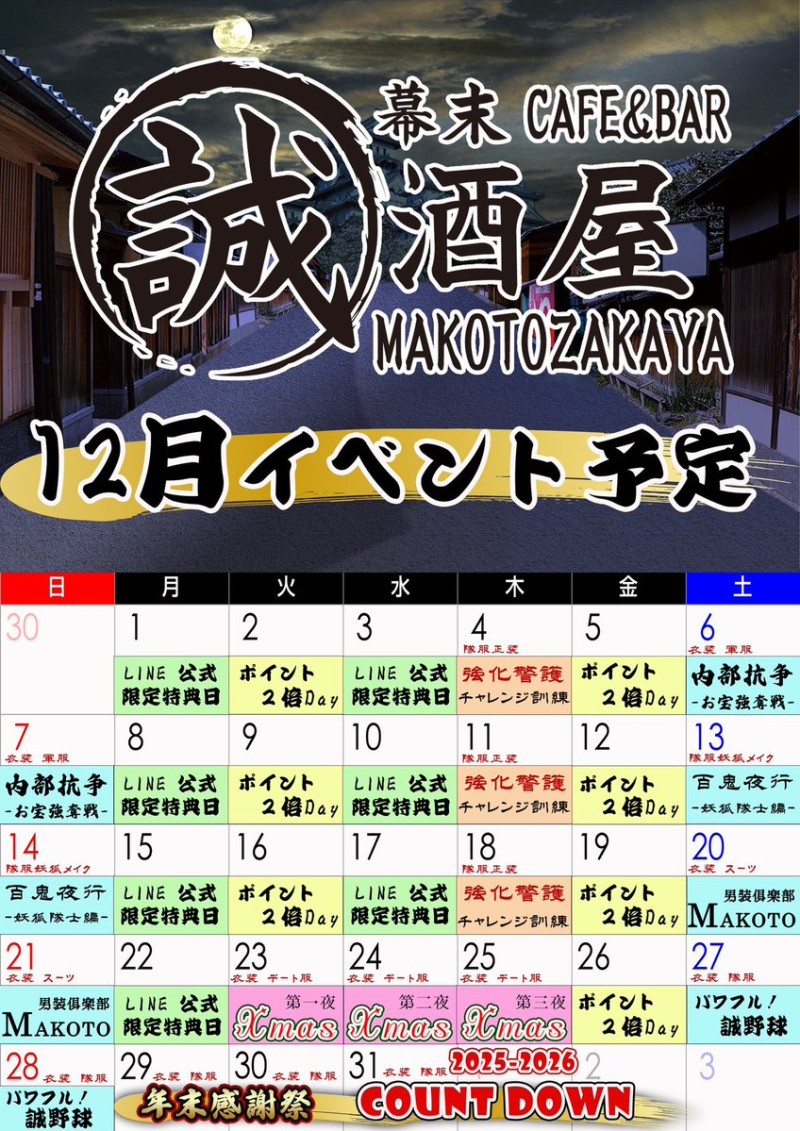 年内ラストも誠酒屋で楽しい時間を過ごしましょう🎅💓