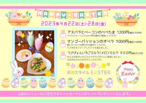 4月22日(土) 本日は17時から22時までの開館です。 イースターイベント限定メニューがスタートです🍴✨ ぜひお召し上がりくださいませ! うさみみメイドがお待ちしておりますよ🐰🐰 🎀お給仕メイド🎀 すずか、ひよこメイド🍳 https://t.co/YRUJgIHVNH