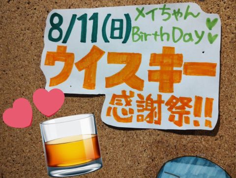 📣イベントのお知らせ❤️‍🔥 8月11日(日) 17:00- ウイスキー感謝祭🥃メイちゃんBirthday🎂🫶 みんなで飲んでお祝いしよう🥳 https://t.co/bU3fxNQozf