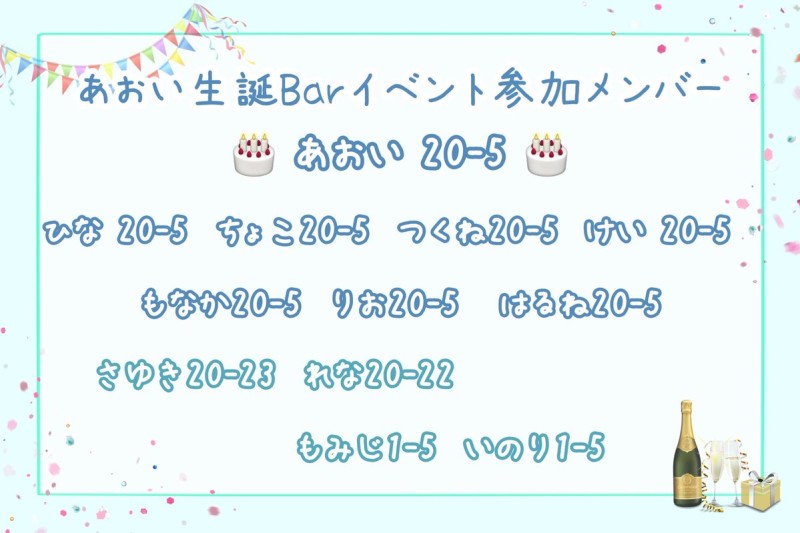 💙あおい生誕Barむベント開催のお知らせ💙 あおい生誕を蚘念しBarむベントを開催いたしたす 特別な日をみんなで華やかにお祝いしたしょう🥂💐 🗓 11月22日土20:00〜翌5:00 📍 倧阪府倧阪垂䞭倮区東心斎橋2䞁目6番20号 皆さたず䞀緒に楜しいひずずきを過ごせるこずを楜しみにしおおりたす✚ https://t.co/QppzDYYq3o