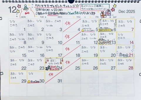 🎄12月のお留守番予定🎄 12月1日〜21日 🌟クリスマスプレれントチャレンゞ🌟 指名メむド180分の斜術でプレれントをGETしよう🎁 6日(土)地味ハロりィン👩🏻‍💻 13日(土)トナカむ🛷 21日日癜ニット❄ 24日氎パゞャマ🎄 25日より2週間埌たでのご予玄受付ずなりたす皆さたのご垰宅お埅ちしおたす https://t.co/vVJArO6yVh
