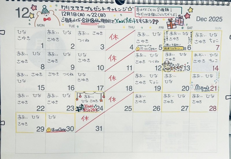 指名メむド180分の斜術でプレれントをGETしよう🎁