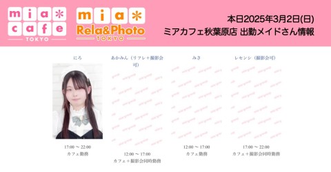 本日3月2日(日)のミアカフェ秋葉原店