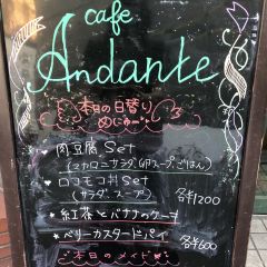 | 営業時間 | 平日15時〜22時。土日祝12時〜22時。不定期で営業時間が変わる場合がございます。詳しくは下記スケジュール表をご確認下さいhttp://andante.jp/ftschedule221/schedule.cgi | ||||||||||||||