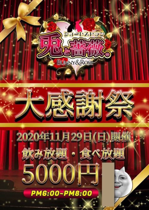 本日18:00から20:00 感謝祭です✨😍 当日来店でも大歓迎です✨✨ 20:00から終電まで リリメイドキャストと兎と薔薇。キャスト合同営業🎵 俺ヒロは20:00から朝まで営業しております🥺 https://t.co/cJckni1871