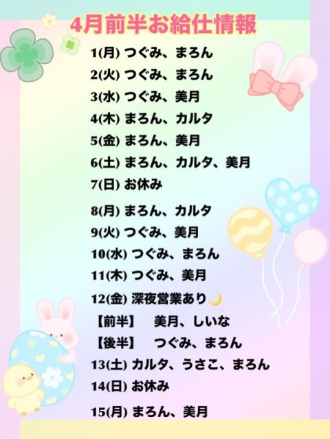 ⚠️シフトが変更になる可能性もございますので予めご了承の程宜しくお願いいたします🙇♀️ https://t.co/uvKJGIbnEL