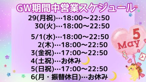 ⭐️GW期間中営業スケジュール⭐️