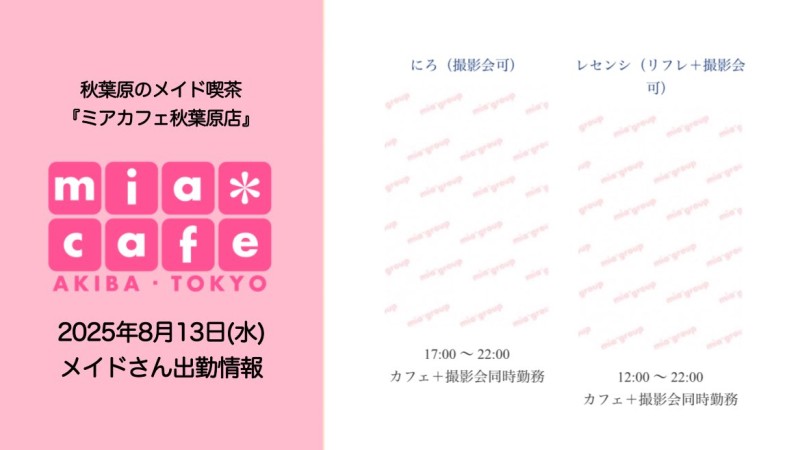 👑本日8月13日(水)のミアカフェ秋葉原店