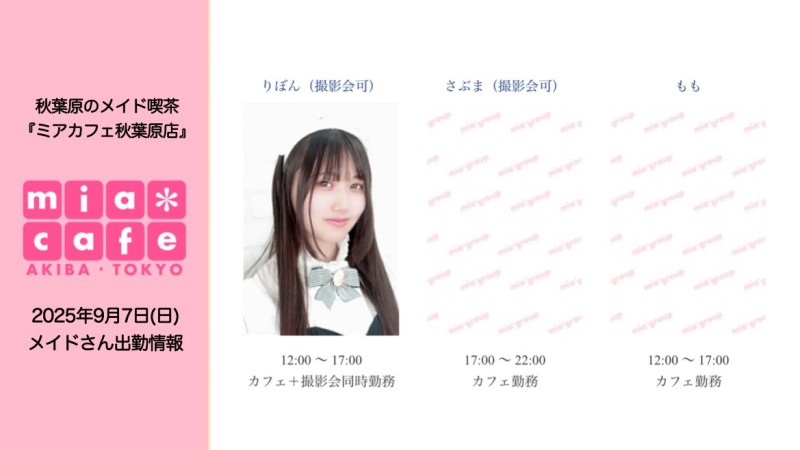 👑本日9月7日(日)のミアカフェ秋葉原店
