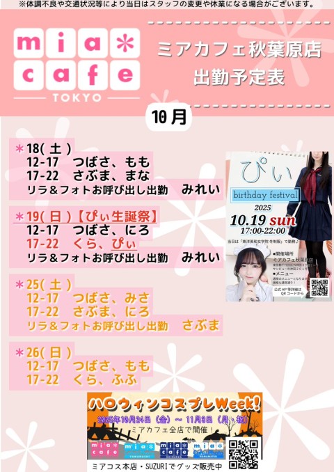 🎀10月19日(日)【ぴぃ生誕祭17:00~】