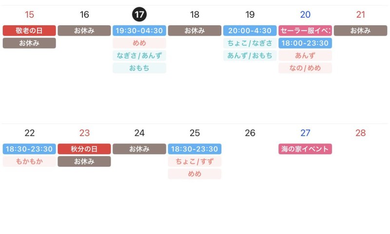 ■9/20(土) …セーラー服イベント🎀
