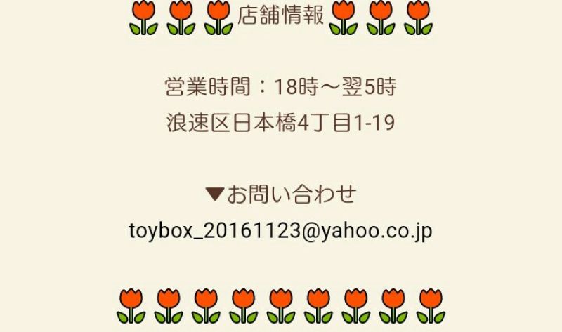 | 住所 | 大阪府大阪市浪速区日本橋4丁目1-19 石井ビル1F | ||||||||||||||