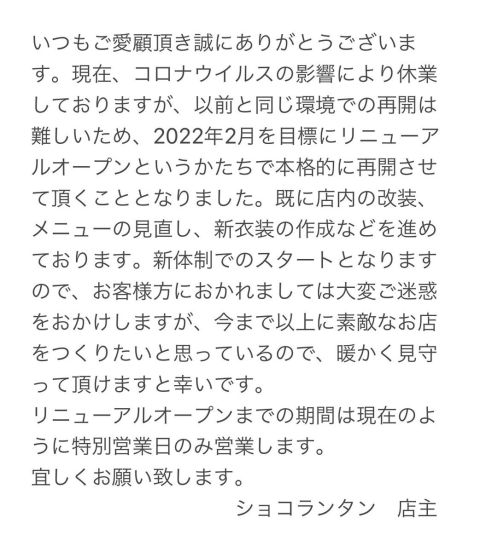 【今後の営業に関するお知らせ】 https://t.co/PXhbCm0VZT