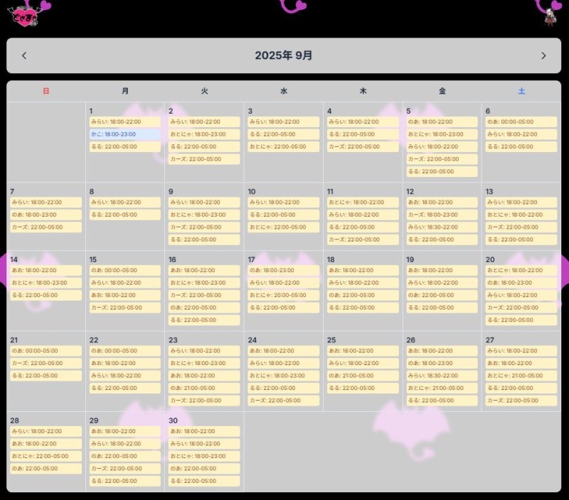 【9月✞✟キャストシフト】