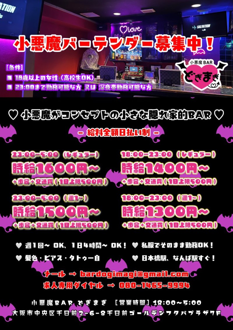 ◆高時給・高歩合率(ドリンクバック30%以上)