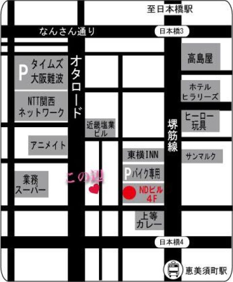 | 住所 | 大阪府大阪市浪速区日本橋4丁目11-7 NDビル4F | |||||||||