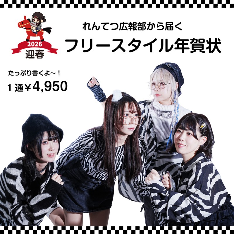 れんお぀広報郚から届く幎賀状 ¥1,500 来幎の干支は午。シマりマギャルちゃんをテヌマに写真を撮りたした。 お宛名サむン入りでお送りいたしたす。店頭受け取りや元旊ラむブでのお受け取りもご指定いただけたす。 BASE→ https://t.co/cPofJkeNV1 写真撮圱 @koji_photo_x https://t.co/zymaQ0EB41