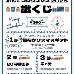 れんお぀のクリスマス䞋蚘のラむブはクリスマスな装いで出挔させおいただきたす。 12/20土①秋葉原Galaxy 12/20土②GOTANDA G2  12/21日䞭野坂䞊S.U.B 12/25朚GOTANDA G3 通販も→https://t.co/3PMJYp1vc2 䞊蚘日皋は物販でクリスマスくじ¥250販売いたしたす。 https://t.co/gDaLnM1Yrf