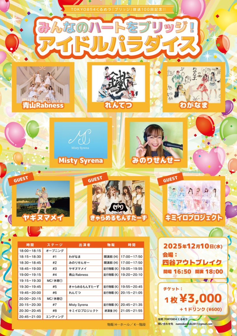 12/10氎『みんなの心をブリッゞアむドルパラダむス』 📍四谷アりトブレむク ⏰OPEN16:50 / START18:00 🎀19:45-20:00 📞20:15-21:05K 🎫¥3,000ドリンク代(ï¿¥600) 🔗https://t.co/rO0Q0NqPi8 https://t.co/5G9krnr1Xg
