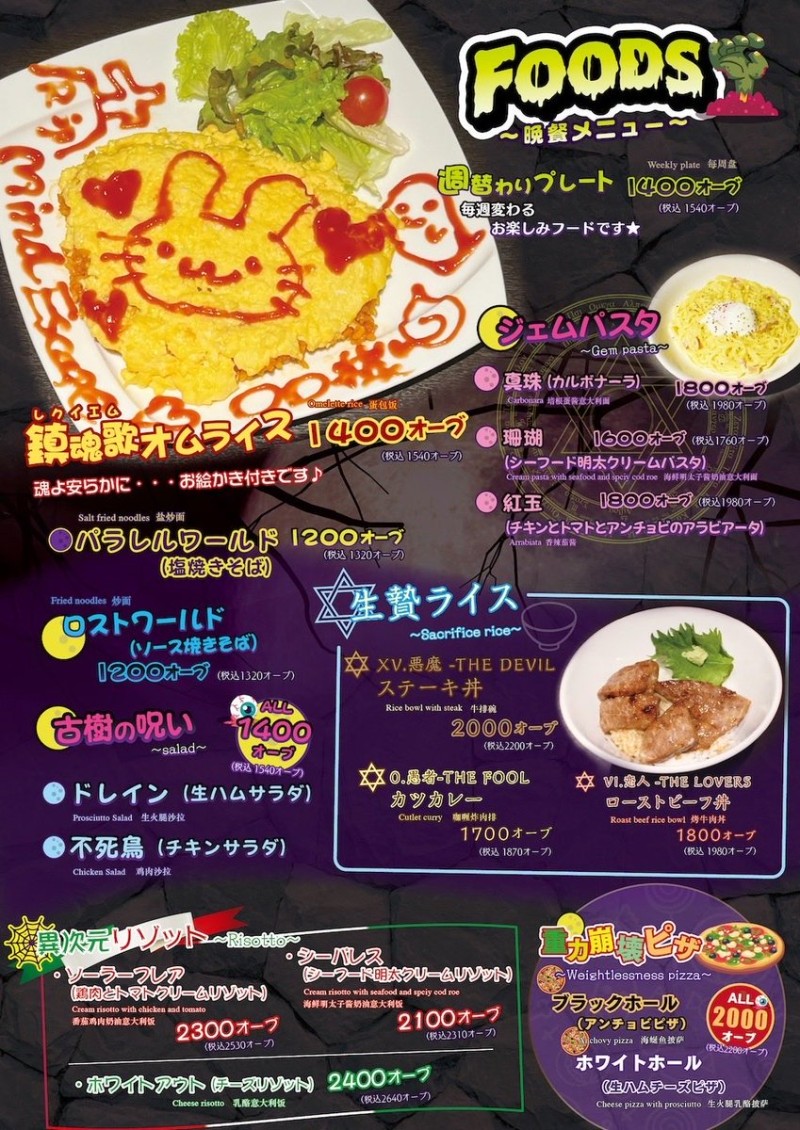 営業時間 | 【営業時間】 平日17:00〜23:00 金・土・祝前日17:00〜翌5:00 日祝17:00〜23:00 水曜定休日 | ||||||||||||||