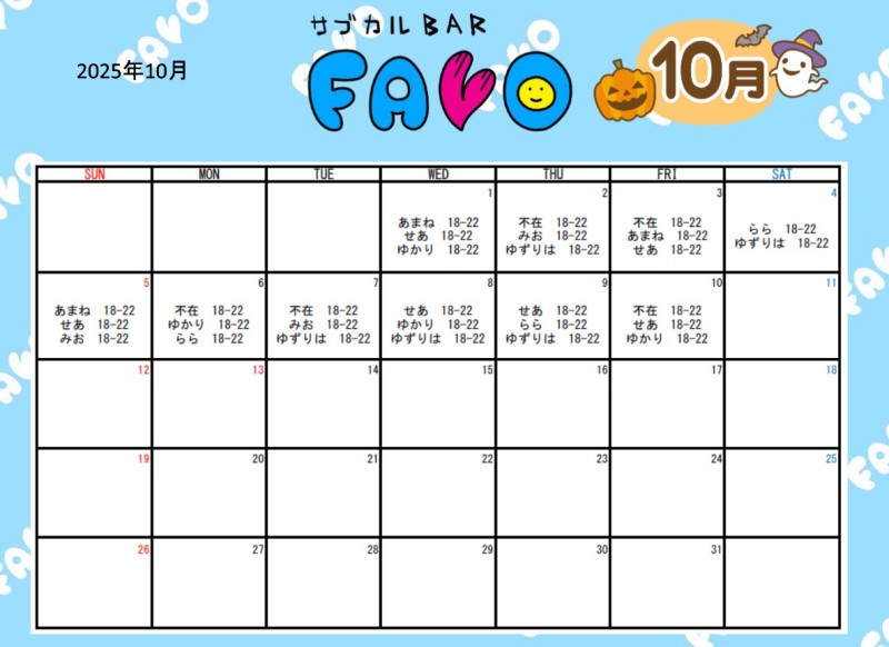 🎀10月のシフト更新🎀