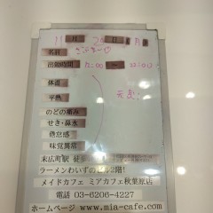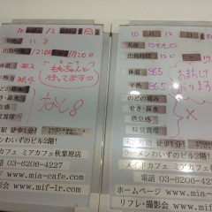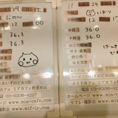 | å¶æ¥æé | âãã¢ã«ãã§æ±äº¬åºïŒã¡ã€ãã«ãã§ïŒhttp://www.mia-cafe.com/ãâ â¡å¹³æ¥ãæïœéãïŒïŒïŒïŒïŒïœïŒïŒïŒïŒïŒ â¡åæã»æ¥æã»ç¥æ¥ãïŒïŒïŒïŒïŒïœïŒïŒïŒïŒïŒ â å®äŒæ¥ããªãïŒ2019幎1æããå®äŒæ¥å»æ¢ïŒ â¡ã©ã¹ããªãŒããŒãéåºã®ïŒïŒåå ãïŒïŒïŒïŒïŒéåºã®å ŽåâïŒïŒïŒïŒïŒã©ã¹ããªãŒããŒ å¶æ¥æ¥ãåºå€ç¶æ³ã«ã€ããŠã¯ãã¡ãã http://pandaland.cutegirl.jp/mif/c_cms_csv/sch_top.php âãã¢ãªã©ïŒãã©ãæ±äº¬åºïŒæ®åœ±äŒïŒãªãã¬ïŒhttp://www.mif-lr.com/ãâ â¡å šæ¥ãïŒïŒïŒïŒïŒãïŒïŒïŒïŒïŒãã§ãããªã©ã¯ãŒãŒã·ã§ã³åºå€ã¹ã¿ãããããæé垯ã®ã¿å¶æ¥ã§ãã â å®äŒæ¥ã¯äžå®äŒïŒåºå€ã¹ã¿ãããããæé垯ã®å¶æ¥ïŒ â¡æçµåä»ãéåºã®ïŒïŒåå ãïŒïŒïŒïŒïŒéåºã®å ŽåâïŒïŒïŒïŒïŒïŒïŒïŒïŒïŒïŒè¿ã«æœè¡æéãçµããã³ãŒã¹ïŒ â»é«æ ¡çäžå¯ âæ·±å€å¶æ¥ã«ã€ããŠã¯ãå ¬åŒãµã€ãå³äžã® http://market.chu.jp/schedule1/sche37.cgi ãã¢ã°ã«ãŒãç·åã¹ã±ãžã¥ãŒã«ïŒïŒ°ïŒ£ã»ã¹ããïŒ http://market.chu.jp/schedule1/sche37.cgi?dm=1 ãã¢ã°ã«ãŒãç·åã¹ã±ãžã¥ãŒã«ïŒã¬ã©æºåž¯ïŒ ãã芧ãã ãããåç¥æ¥ã®ã¿å¶æ¥ãšãªããŸããåç¥æ¥ä»¥å€ã¯æ·±å€å¶æ¥ããããŠãããŸããã æ·±å€å¶æ¥å¯Ÿè±¡æ¥ãïŒïŒïŒïŒïŒãç¿æïŒïŒïŒïŒïŒïŒ¬ïŒïŒ¯ïŒïŒïŒïŒïŒïŒ | ||||||||||||||