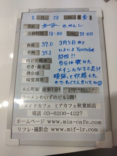 | å¶æ¥æé | âãã¢ã«ãã§æ±äº¬åºïŒã¡ã€ãã«ãã§ïŒhttp://www.mia-cafe.com/ãâ â¡å¹³æ¥ãæïœéãïŒïŒïŒïŒïŒïœïŒïŒïŒïŒïŒ â¡åæã»æ¥æã»ç¥æ¥ãïŒïŒïŒïŒïŒïœïŒïŒïŒïŒïŒ â å®äŒæ¥ããªãïŒ2019幎1æããå®äŒæ¥å»æ¢ïŒ â¡ã©ã¹ããªãŒããŒãéåºã®ïŒïŒåå ãïŒïŒïŒïŒïŒéåºã®å ŽåâïŒïŒïŒïŒïŒã©ã¹ããªãŒããŒ å¶æ¥æ¥ãåºå€ç¶æ³ã«ã€ããŠã¯ãã¡ãã http://pandaland.cutegirl.jp/mif/c_cms_csv/sch_top.php âãã¢ãªã©ïŒãã©ãæ±äº¬åºïŒæ®åœ±äŒïŒãªãã¬ïŒhttp://www.mif-lr.com/ãâ â¡å šæ¥ãïŒïŒïŒïŒïŒãïŒïŒïŒïŒïŒãã§ãããªã©ã¯ãŒãŒã·ã§ã³åºå€ã¹ã¿ãããããæé垯ã®ã¿å¶æ¥ã§ãã â å®äŒæ¥ã¯äžå®äŒïŒåºå€ã¹ã¿ãããããæé垯ã®å¶æ¥ïŒ â¡æçµåä»ãéåºã®ïŒïŒåå ãïŒïŒïŒïŒïŒéåºã®å ŽåâïŒïŒïŒïŒïŒïŒïŒïŒïŒïŒïŒè¿ã«æœè¡æéãçµããã³ãŒã¹ïŒ â»é«æ ¡çäžå¯ âæ·±å€å¶æ¥ã«ã€ããŠã¯ãå ¬åŒãµã€ãå³äžã® http://market.chu.jp/schedule1/sche37.cgi ãã¢ã°ã«ãŒãç·åã¹ã±ãžã¥ãŒã«ïŒïŒ°ïŒ£ã»ã¹ããïŒ http://market.chu.jp/schedule1/sche37.cgi?dm=1 ãã¢ã°ã«ãŒãç·åã¹ã±ãžã¥ãŒã«ïŒã¬ã©æºåž¯ïŒ ãã芧ãã ãããåç¥æ¥ã®ã¿å¶æ¥ãšãªããŸããåç¥æ¥ä»¥å€ã¯æ·±å€å¶æ¥ããããŠãããŸããã æ·±å€å¶æ¥å¯Ÿè±¡æ¥ãïŒïŒïŒïŒïŒãç¿æïŒïŒïŒïŒïŒïŒ¬ïŒïŒ¯ïŒïŒïŒïŒïŒïŒ | ||||||||||||||