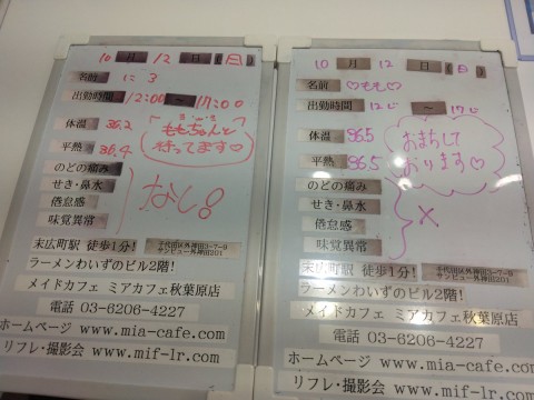 | å¶æ¥æé | âãã¢ã«ãã§æ±äº¬åºïŒã¡ã€ãã«ãã§ïŒhttp://www.mia-cafe.com/ãâ â¡å¹³æ¥ãæïœéãïŒïŒïŒïŒïŒïœïŒïŒïŒïŒïŒ â¡åæã»æ¥æã»ç¥æ¥ãïŒïŒïŒïŒïŒïœïŒïŒïŒïŒïŒ â å®äŒæ¥ããªãïŒ2019幎1æããå®äŒæ¥å»æ¢ïŒ â¡ã©ã¹ããªãŒããŒãéåºã®ïŒïŒåå ãïŒïŒïŒïŒïŒéåºã®å ŽåâïŒïŒïŒïŒïŒã©ã¹ããªãŒããŒ å¶æ¥æ¥ãåºå€ç¶æ³ã«ã€ããŠã¯ãã¡ãã http://pandaland.cutegirl.jp/mif/c_cms_csv/sch_top.php âãã¢ãªã©ïŒãã©ãæ±äº¬åºïŒæ®åœ±äŒïŒãªãã¬ïŒhttp://www.mif-lr.com/ãâ â¡å šæ¥ãïŒïŒïŒïŒïŒãïŒïŒïŒïŒïŒãã§ãããªã©ã¯ãŒãŒã·ã§ã³åºå€ã¹ã¿ãããããæé垯ã®ã¿å¶æ¥ã§ãã â å®äŒæ¥ã¯äžå®äŒïŒåºå€ã¹ã¿ãããããæé垯ã®å¶æ¥ïŒ â¡æçµåä»ãéåºã®ïŒïŒåå ãïŒïŒïŒïŒïŒéåºã®å ŽåâïŒïŒïŒïŒïŒïŒïŒïŒïŒïŒïŒè¿ã«æœè¡æéãçµããã³ãŒã¹ïŒ â»é«æ ¡çäžå¯ âæ·±å€å¶æ¥ã«ã€ããŠã¯ãå ¬åŒãµã€ãå³äžã® http://market.chu.jp/schedule1/sche37.cgi ãã¢ã°ã«ãŒãç·åã¹ã±ãžã¥ãŒã«ïŒïŒ°ïŒ£ã»ã¹ããïŒ http://market.chu.jp/schedule1/sche37.cgi?dm=1 ãã¢ã°ã«ãŒãç·åã¹ã±ãžã¥ãŒã«ïŒã¬ã©æºåž¯ïŒ ãã芧ãã ãããåç¥æ¥ã®ã¿å¶æ¥ãšãªããŸããåç¥æ¥ä»¥å€ã¯æ·±å€å¶æ¥ããããŠãããŸããã æ·±å€å¶æ¥å¯Ÿè±¡æ¥ãïŒïŒïŒïŒïŒãç¿æïŒïŒïŒïŒïŒïŒ¬ïŒïŒ¯ïŒïŒïŒïŒïŒïŒ | ||||||||||||||