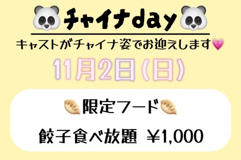 わんちゃんすおーぷんしました! 本日チャイナイベントです🐼💗 焼き餃子&水餃子が 1000円で食べ放題‼️ もも もる おる さち 國井p でお待ちしております💗 #秋葉原 #コンカフェ https://t.co/OJfPhLKJ5w