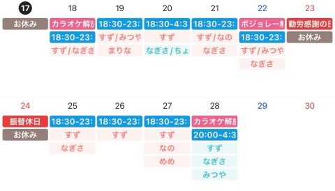 🎀écru11月𝗌𝖼𝗁𝖾𝖽𝗎𝗅e🎀 ◽︎11/7(木)…カラオケ解放デー🎤🎶 https://t.co/KY7fgZzvZJ