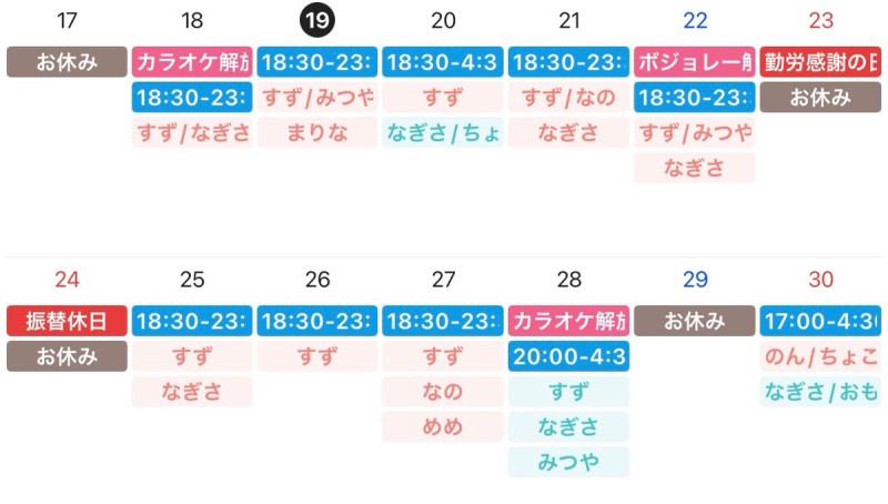 🎀écru11月𝗌𝖼𝗁𝖾𝖽𝗎𝗅e🎀 ◽︎11/7(木)…カラオケ解放デー🎤🎶 https://t.co/KY7fgZzvZJ