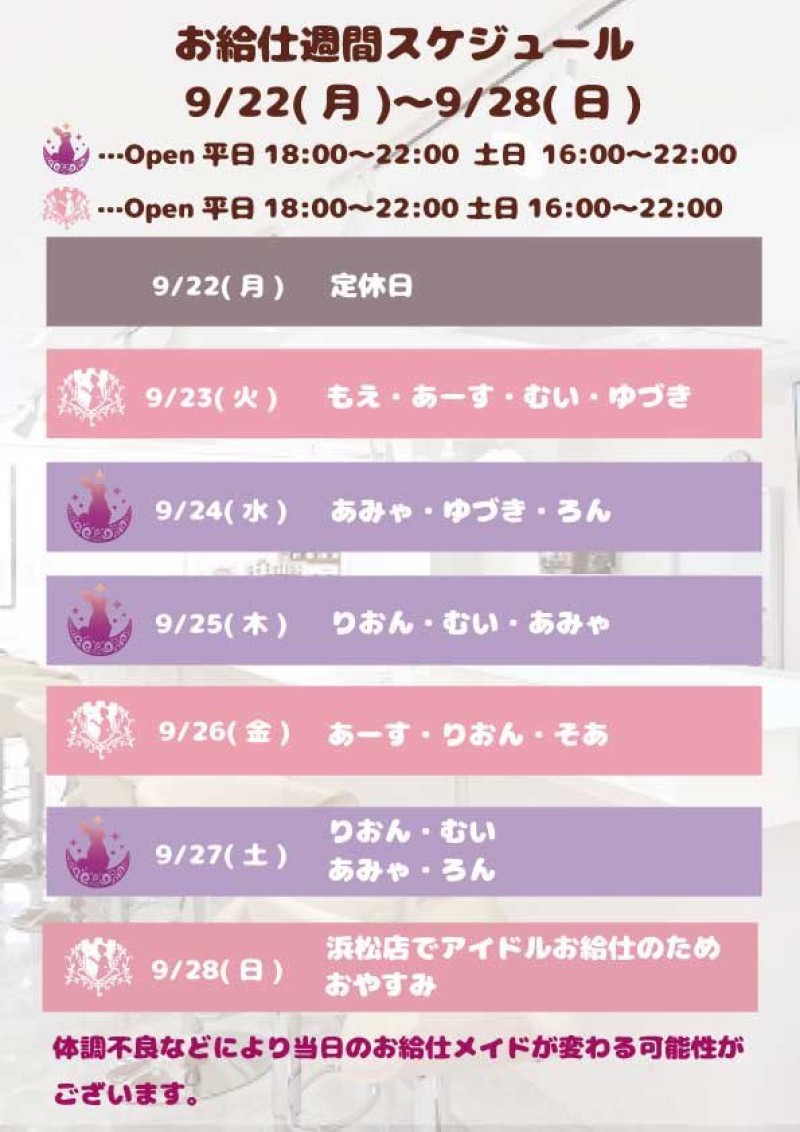 【お給仕週間スケジュール】