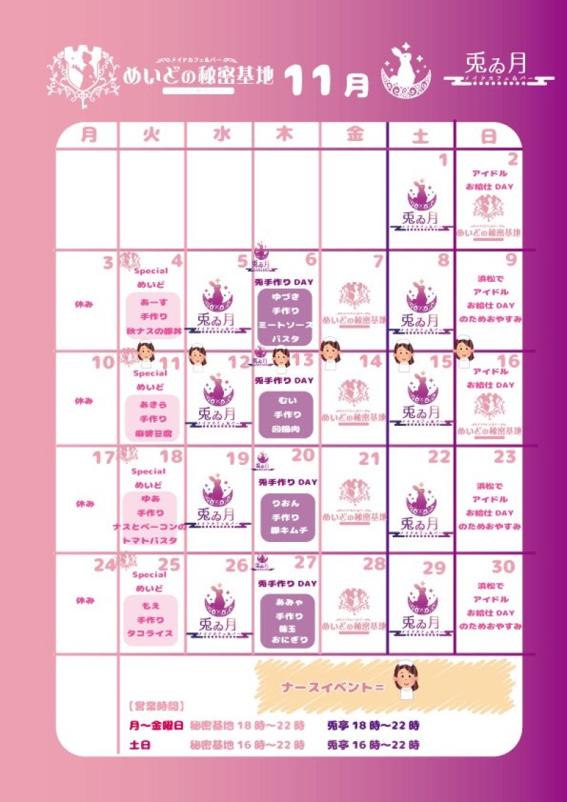 ナースイベメニューご予約はDMから、当日注文の特典は後日渡しです。