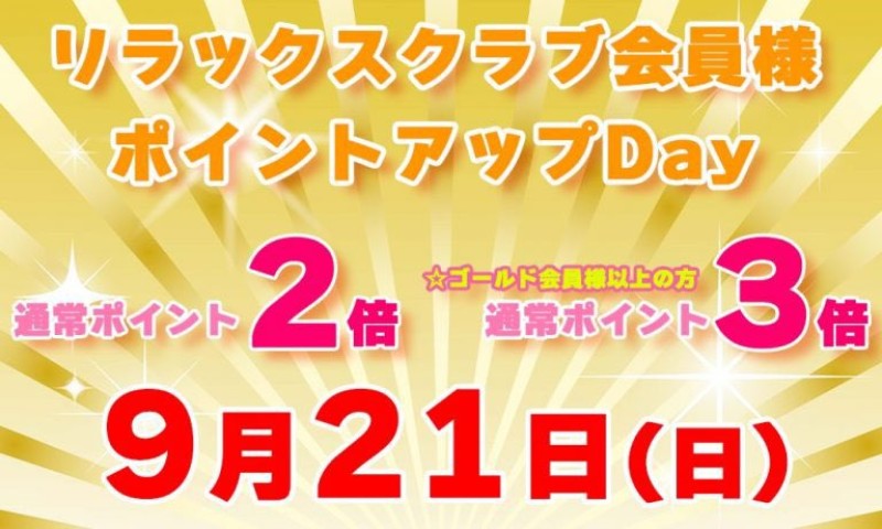 ææ¥9/21(æ¥)ã¯ãªã©ãã¯ã¹äŒå¡æ§ðãã€ã³ãéå