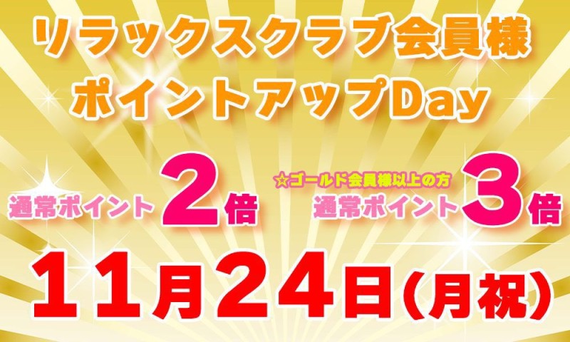 æ¬æ¥11/24(æç¥)ã¯ãªã©ãã¯ã¹äŒå¡æ§ðãã€ã³ãéå