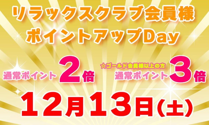 12æååã®ãªã©ãã¯ã¹äŒå¡æ§éåžžãã€ã³ãïŒåã»GOLDäŒå¡æ§ä»¥äžïŒådayã¯ã12æ13æ¥(å)ã§ãð¢