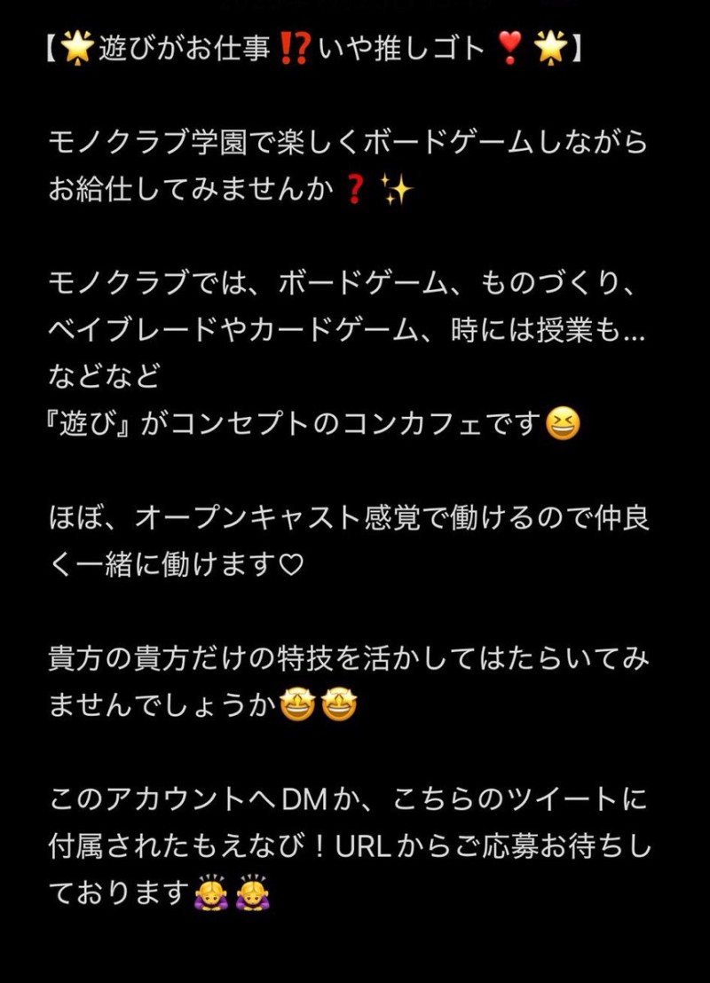 モノクラブでは一緒に『遊び』をコンセプトに働いてくれるキャストメンバーを探しております♪
