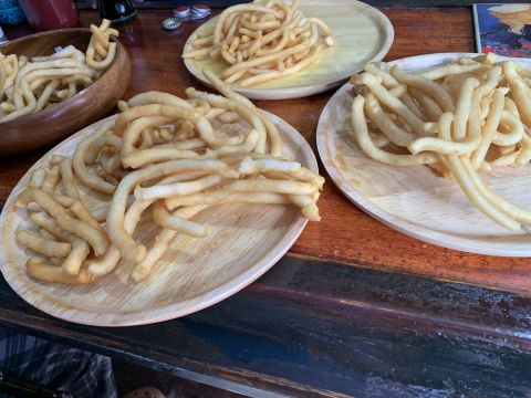 パパが移動販売用の試作でポテト作る練習しとるんやけど急なポテトパーティー始まったから誰か処理手伝って……切実に…… https://t.co/SGIxXSAudT