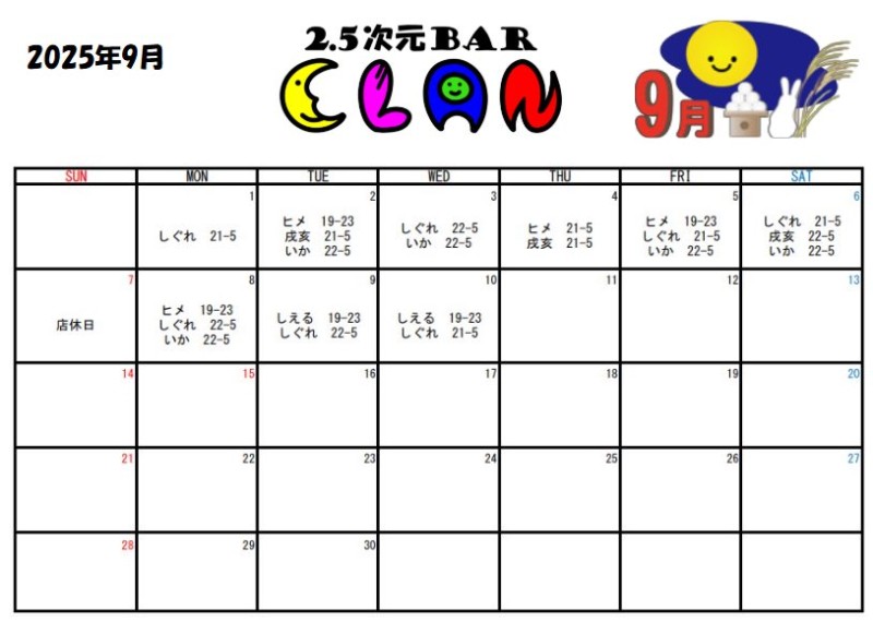 9月シフト更新✨✨🩵