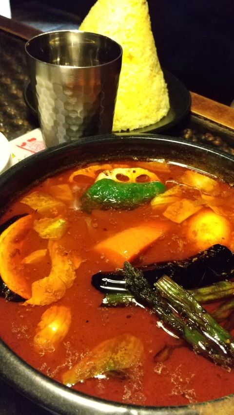 スープカレーは寒い日には嬉しいな~ 奥の黄色にそびえるピラミッドライス(キンタマーニ)は僕ではありません😅 #スープカレー #キンタマーニ #安孫子ラマイ #アニソンバーよろずや https://t.co/oglCLTtobs