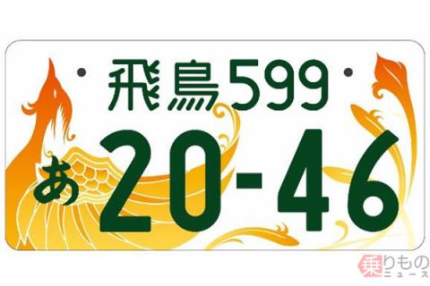 不死鳥フェニックスが描かれた今年から交付されてる奈良県の飛鳥ナンバー