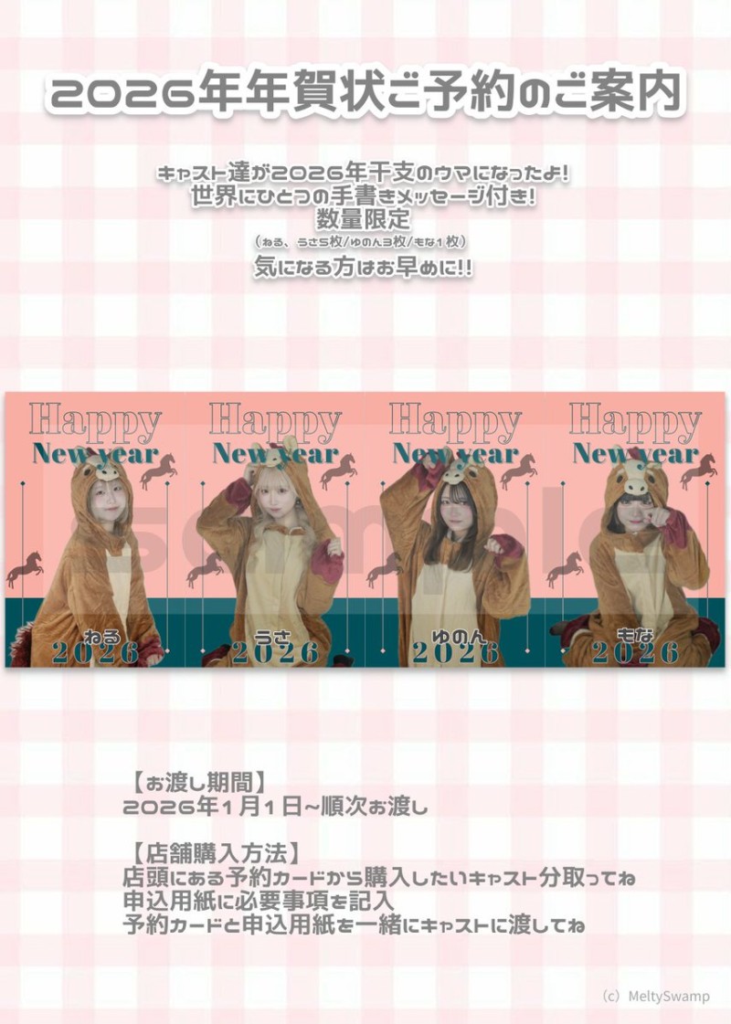 🎍メルスワ福袋&年賀状販売🐴 年賀状・福袋オンライン予約開始してます🎶 残り少ないキャストもいます‼️ 年賀状・福袋同時購入でお得になるのでご予約はお早めにーーーっ!! #コンカフェ #メルスワ #町田 https://t.co/NsN74olkaM