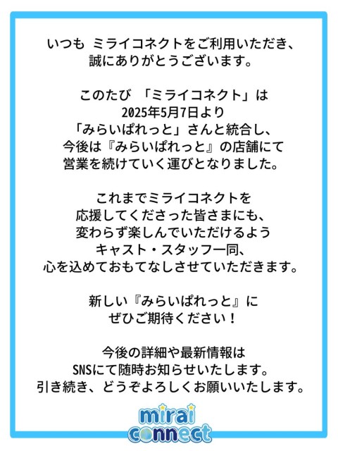 ミライコネクトからお知らせです。 https://t.co/0AUx0ph2bU
