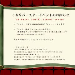 | 営業時間 | ・平日 14:00〜21:00 ・土日祝 12:00〜22:00 ※年末年始、GW、お盆の営業時間は変則となることがございますのであらかじめご了承下さい。 | ||||||||||||||