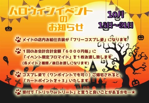 こんにちは♬ 本日の営業日時は【10月23日】【14:00〜18:00】 お留守番メイドは 🎃りりな 🎃ヘルプ でございます♬ ハロウィンイベント開催中です👻❤️✨ フリーコスプレ姿でご帰宅お待ちしております☺️🦇❤️ https://t.co/0pYHQWJYl9
