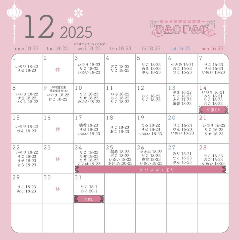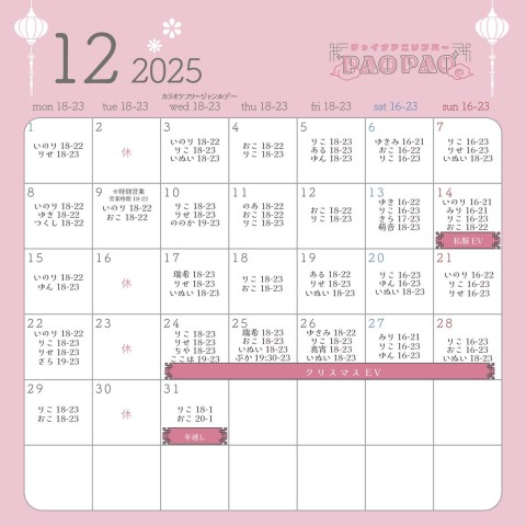 | 営業時間 | 【2021年7月2日オープン予定】 月曜18:00〜23:00 金曜23:00〜翌5:00 土曜23:00〜翌5:00 | ||||||||||||||