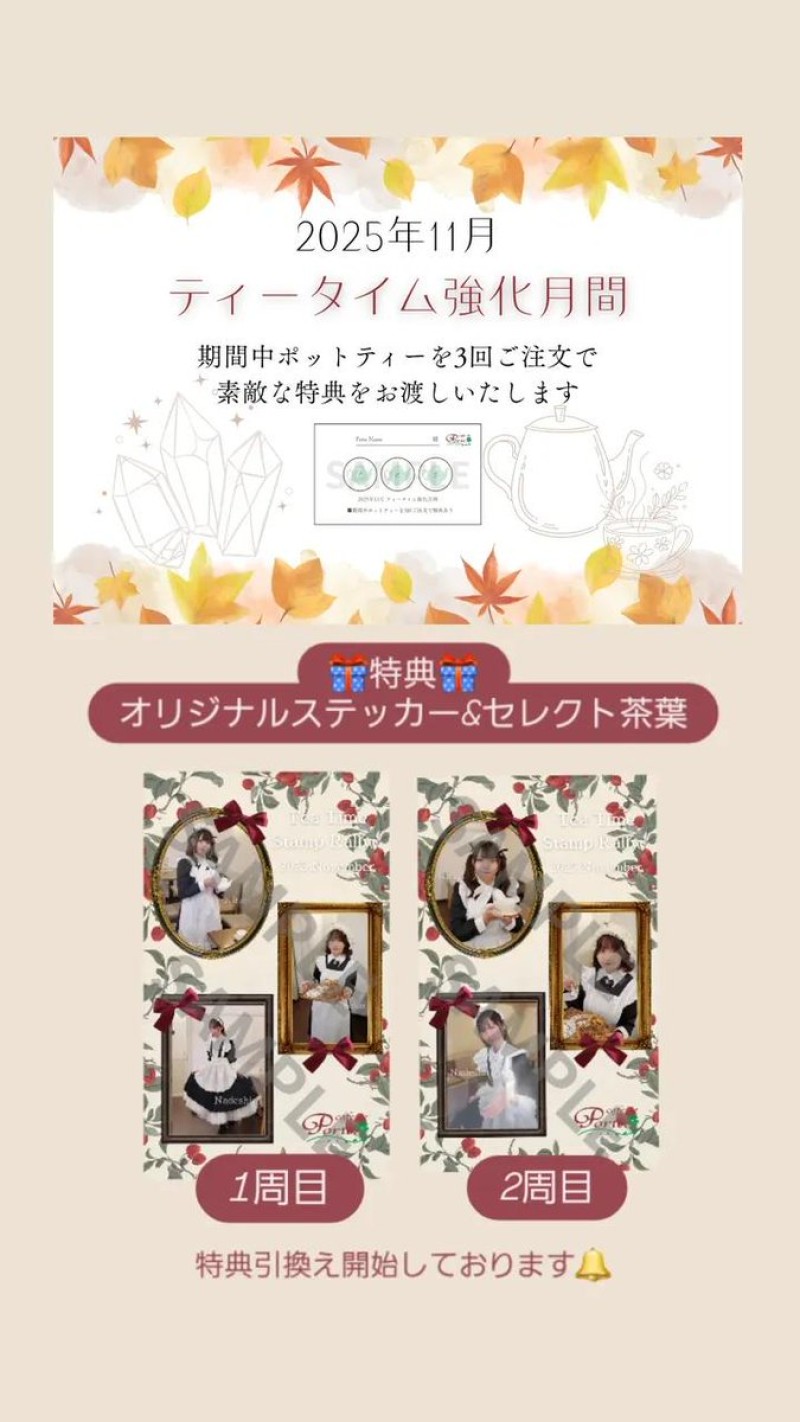 ご䞻人様・お嬢様 ごきげんよう🍁 開通しおおりたす 11月30日(日) 【 OPEN 13:00CLOSE 19:00 】 LO FOOD 18:00 DRINKDESSERT 18:30 ティヌスタンプラリヌ、メヌプルフェア、文化的ポルテの最終日です 本日もメむド䞀同、お垰りを心よりお埅ちしおおりたす🏡 https://t.co/SoaKsFKrFm