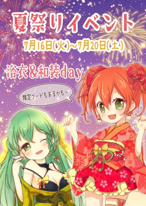 本日から夏祭りイベント開催です。 ~限定フードもあります~ ご来店お待ちしております #コンカフェ #川口駅 #ガールズバー #アニソンバー #コスプレ #夏祭り #浴衣 https://t.co/1cCNiFmFYV
