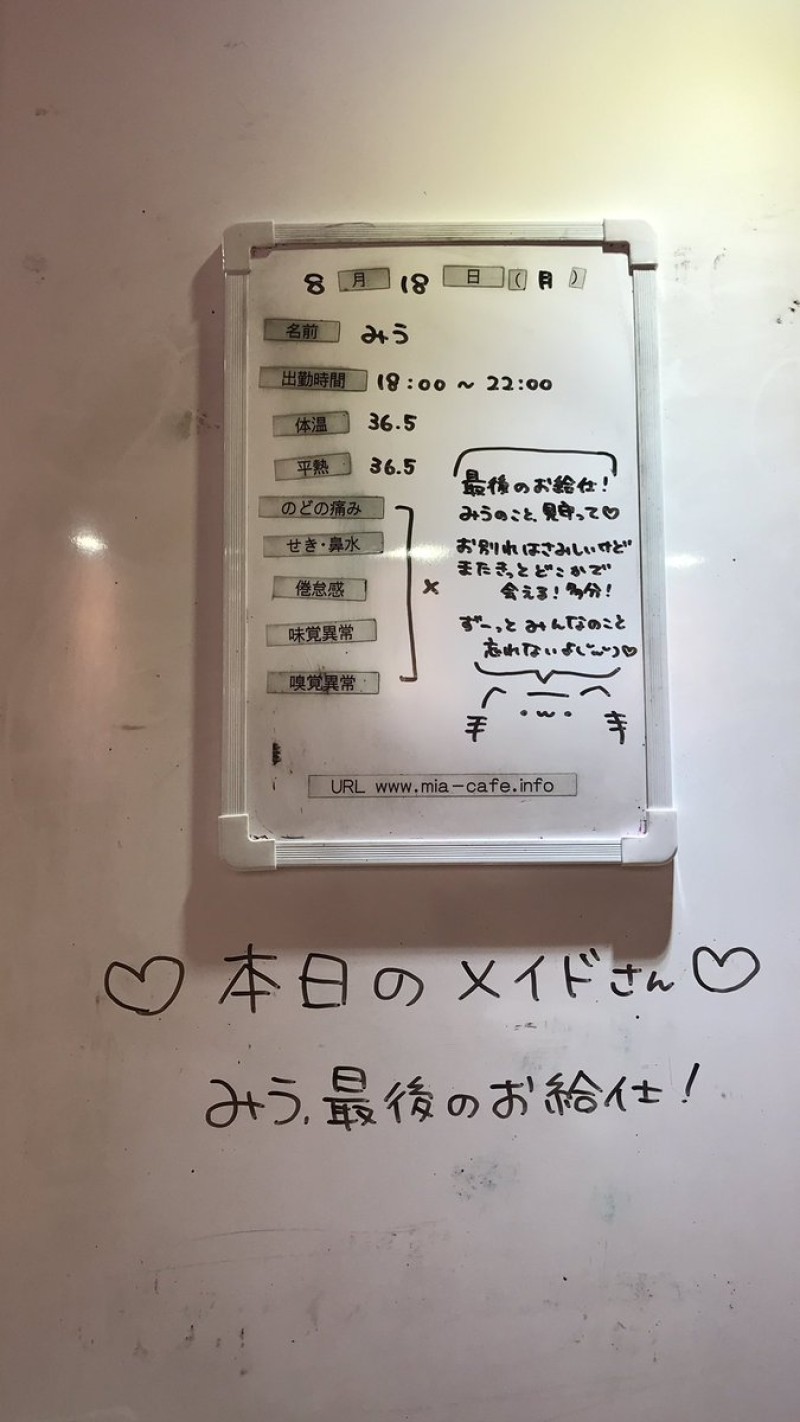 営業時間 | 静岡店は出勤スタッフがいれば営業です! 基本的に 12時~22時が営業時間です! ●静岡店のツイッター @shizuokamaidsan https://twitter.com/shizuokamaidsan ●ミア静岡店の営業曜日&営業時間● ☆月〜木 14:00〜22:00(最終受付20:00) ☆金曜日 12:00〜22:00(最終受付21:00) ☆土・日・祝 12:00〜22:00(最終受付21:00) 営業時間外はオンライン予約にてお願いいたします。 PC・携帯共通 → http://m-kanzume.moo.jp/yoyaku2/user.cgi ●ミアガイド出勤状況● スマホ・PC → 後日公開予定 ★静岡店スタッフによるミア甲府店でのメイドカフェリアル営業★ ☆不定期 サイトにてご確認ください。 http://market.chu.jp/schedule1/sche37.cgi | ||||||||||||||